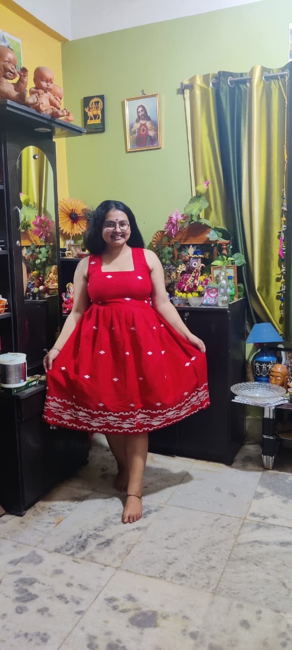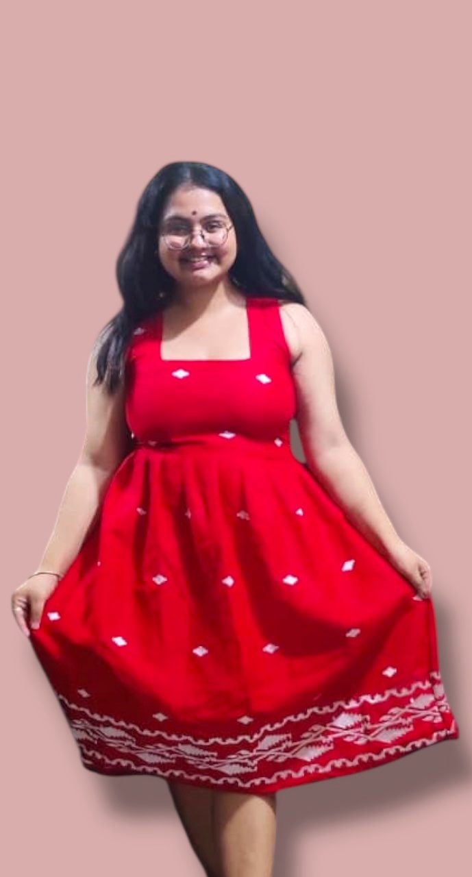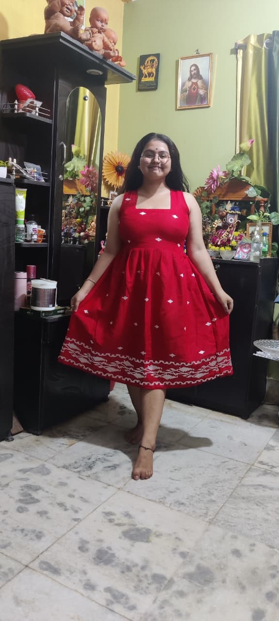 Made with Cambric Cotton Jamdani Embroidered Dress.