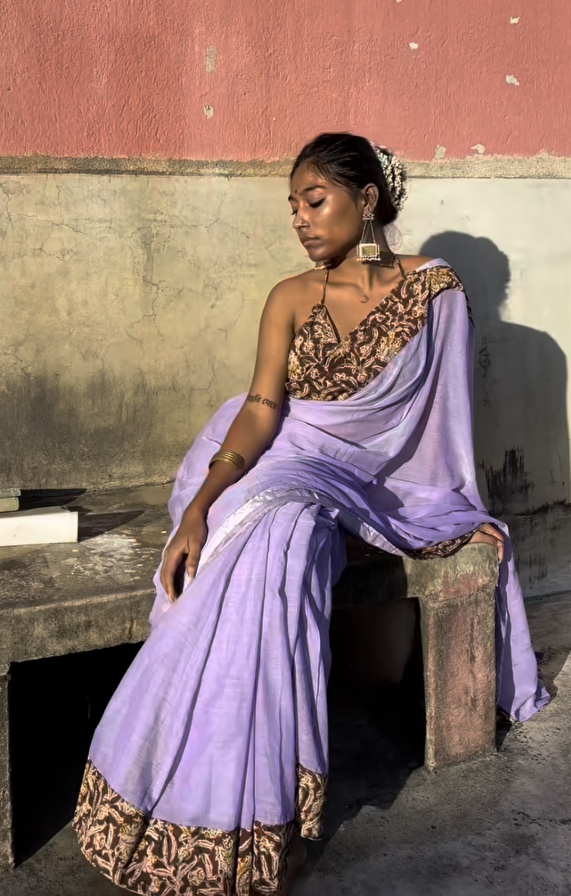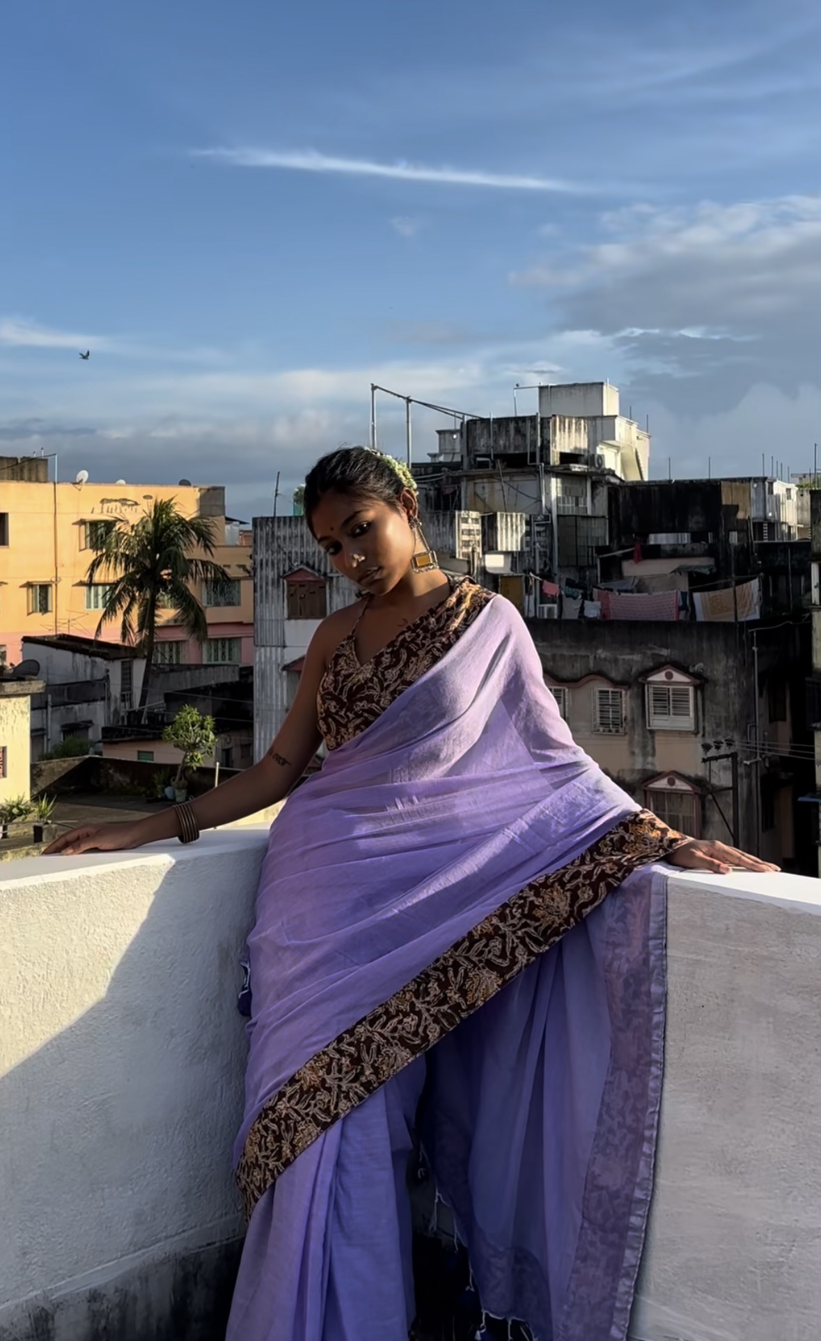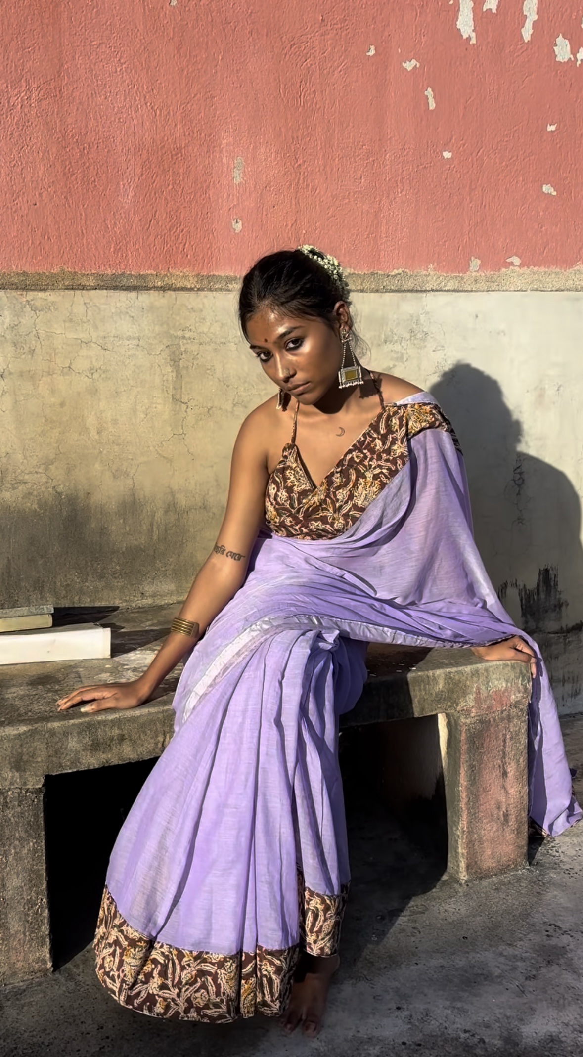 Soft Mulmul Cotton Lavender Saree with Kalamkari Patchwork and 1mtr blouse piece.