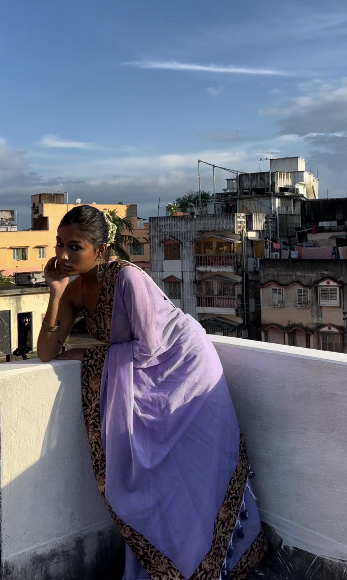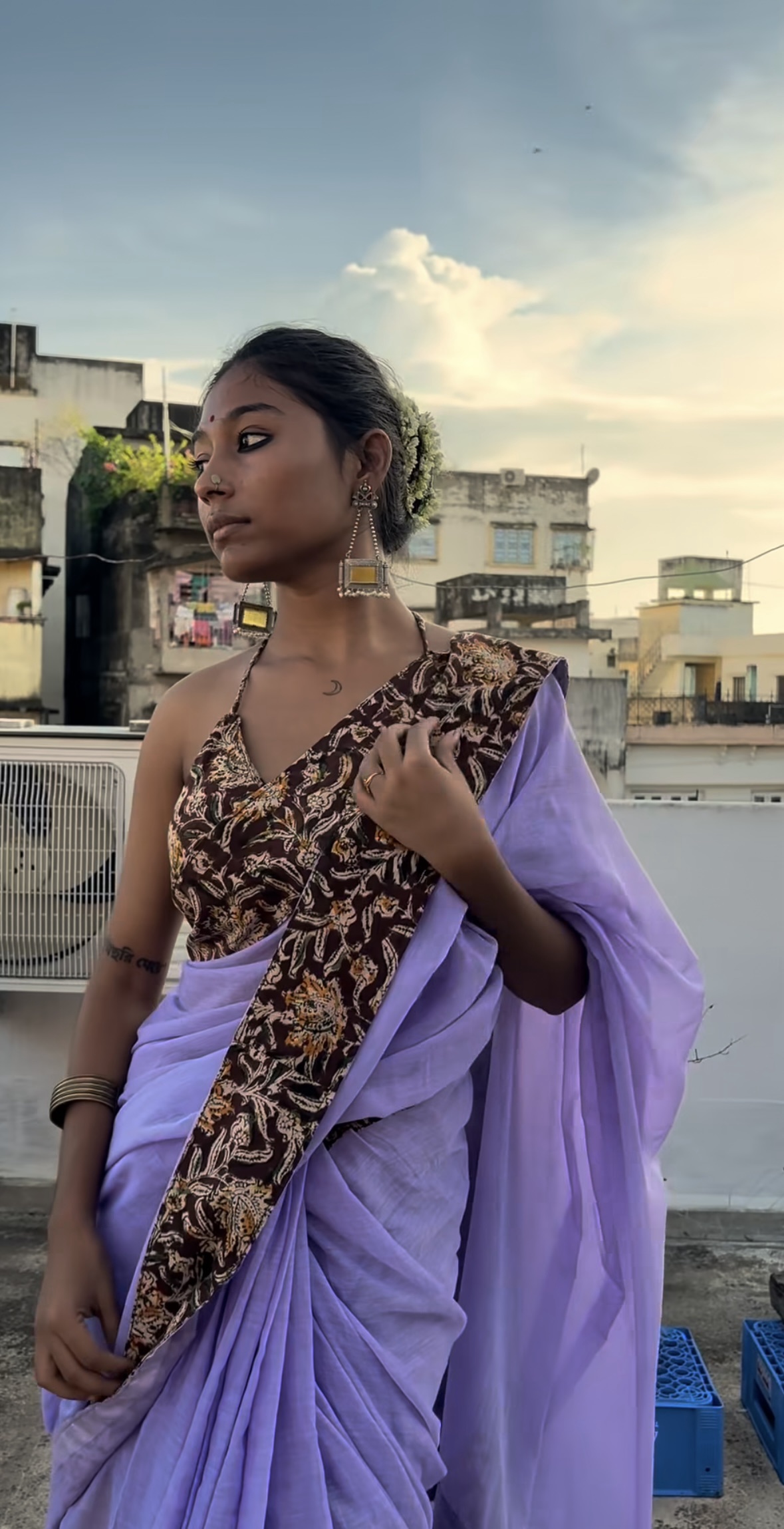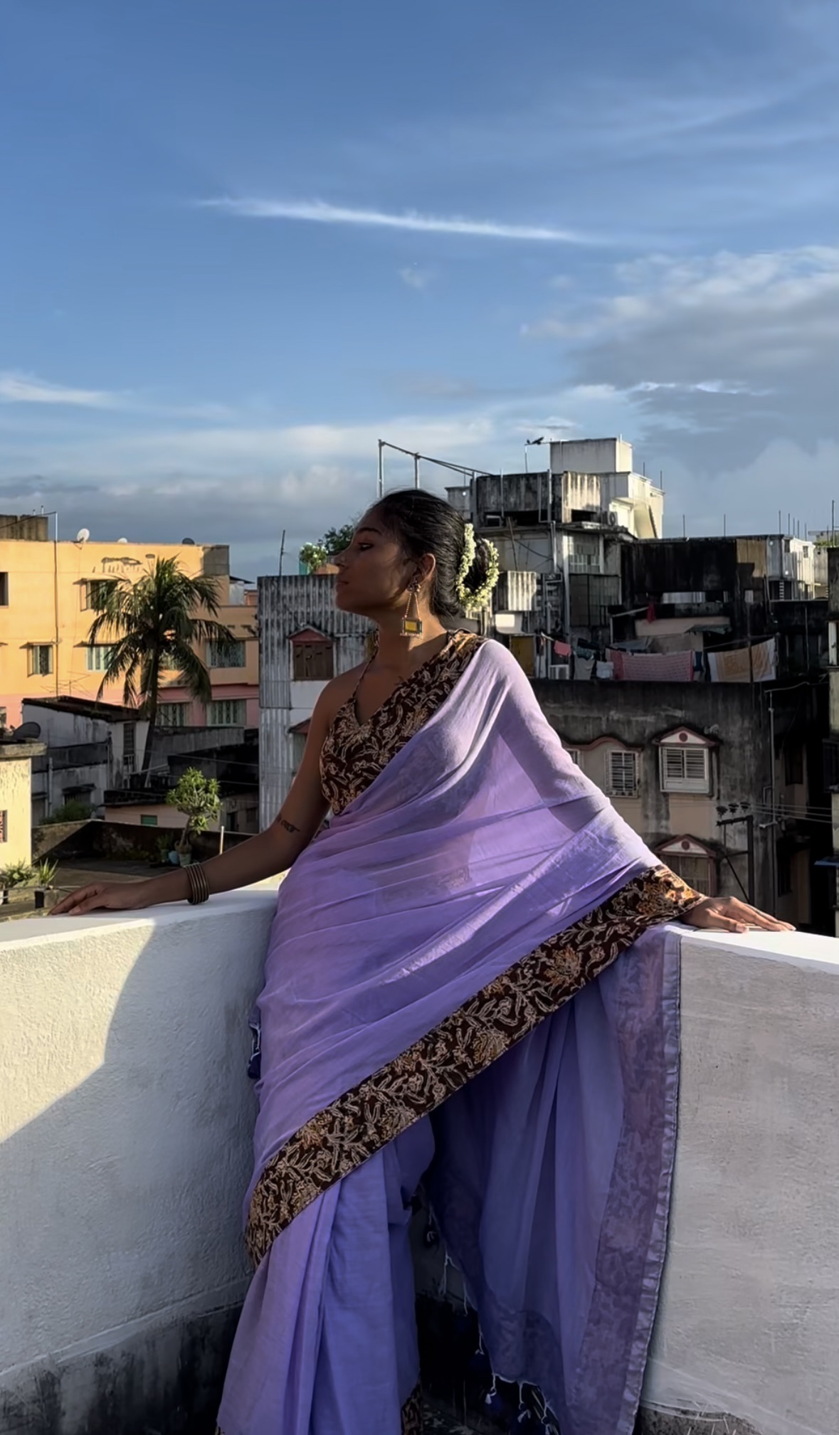 Soft Mulmul Cotton Lavender Saree with Kalamkari Patchwork and 1mtr blouse piece.