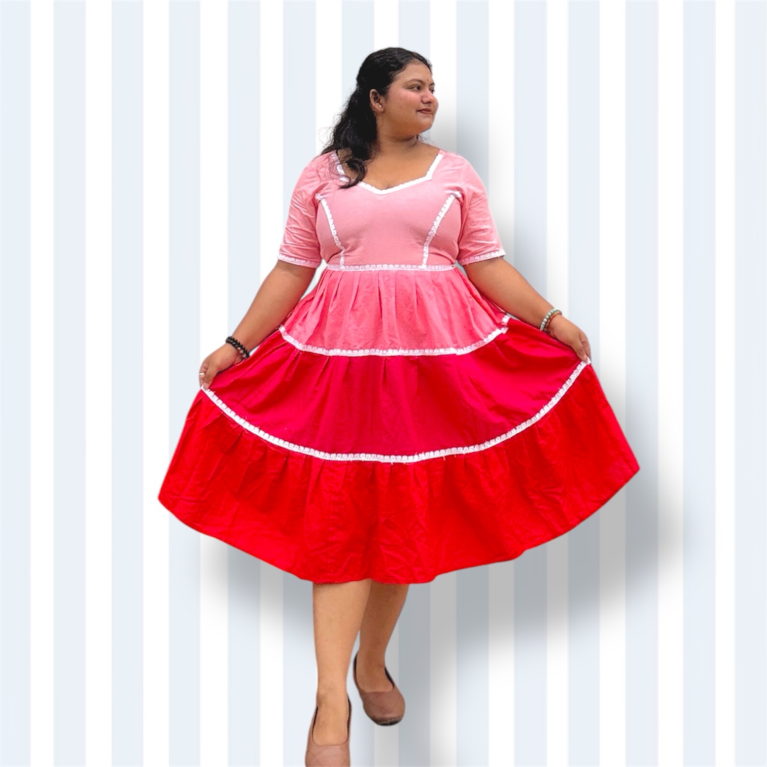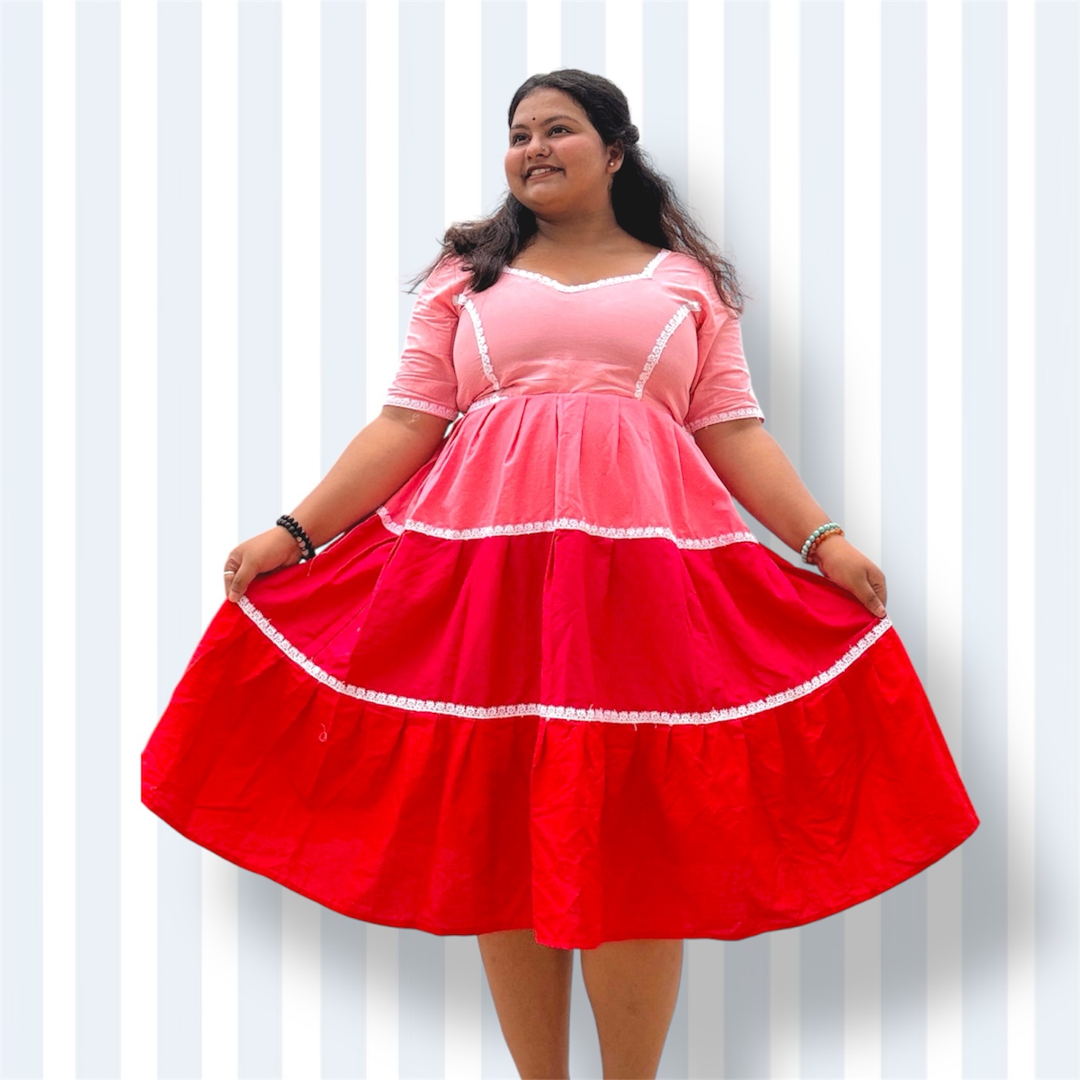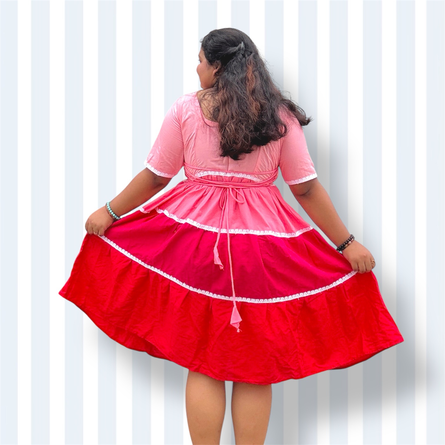 Ombre Tiered dress with three tiers and all shades of pink oozing out of it, giving Barbie core vibes❤️🌼