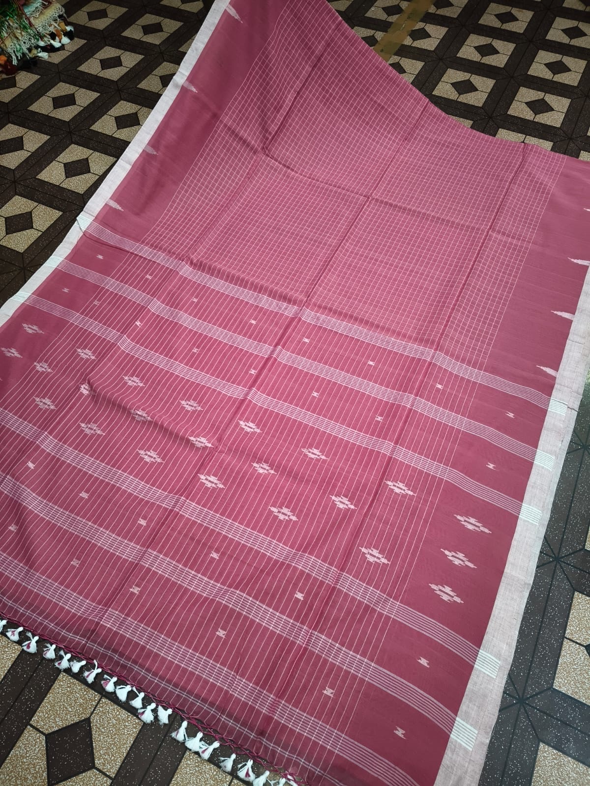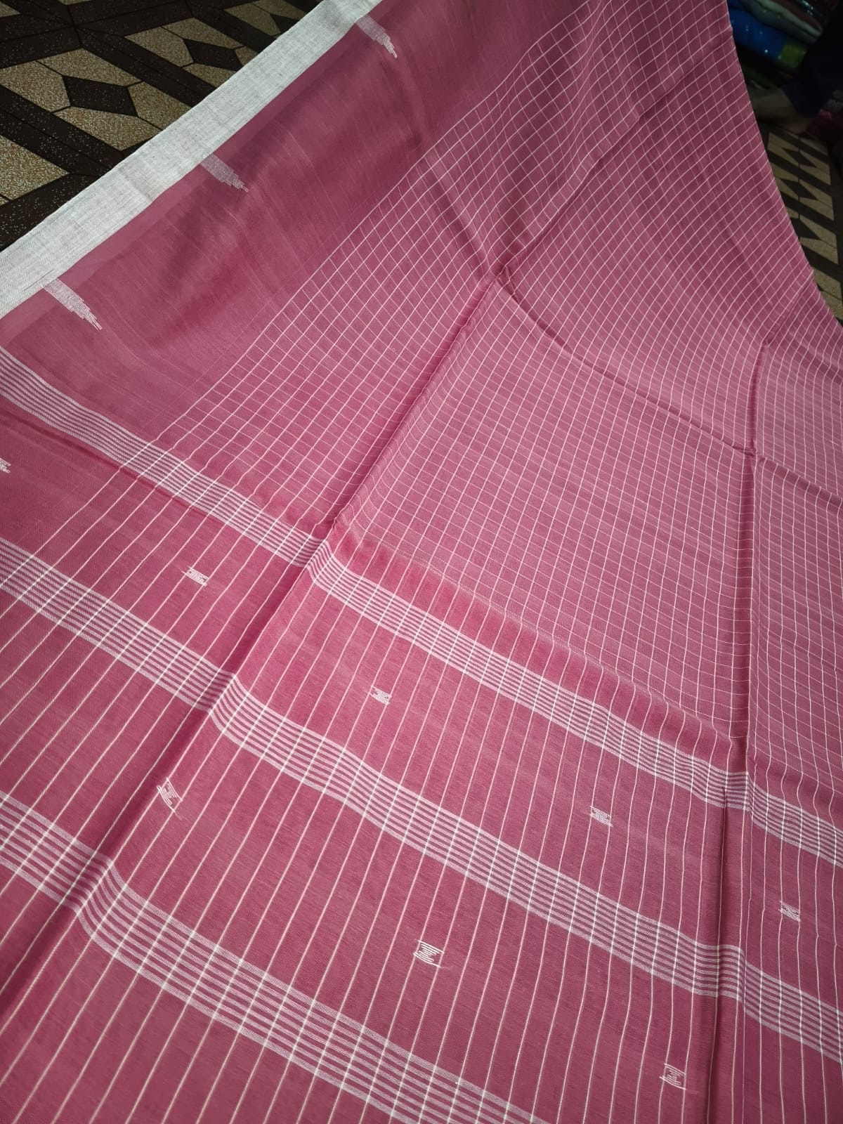 Soft Bengal Cotton Check Saree with Jamdani Buti Work